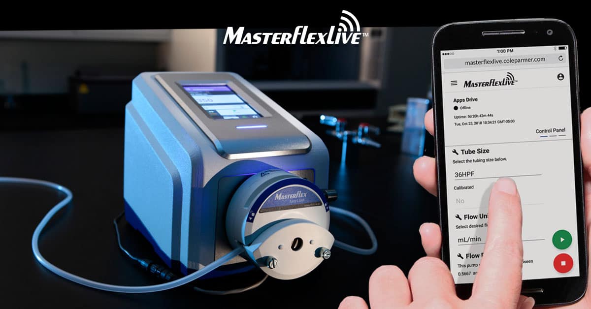 Vi kjenner alle til utviklingen med IoT-produkter (Internet of Things) hvor tingene i hjemmet kan kobles til internett, og hvor brukeren enkelt kan få oversikt eller styre enheten gjennom en mobil-app eller en skybasert tjeneste. Dette kan være smartprodukter som alarmanlegg, dørlåser, lydanlegg, lyspærer og panelovner som brukeren enkelt kan fjernstyre, overvåke og programmere slik han ønsker. Den samme IoT-teknologien blir nå i større og større grad også tatt i bruk på industri- og laboratorieprodukter. MasterflexLive er markedets første IoT-løsning for slangepumper. MasterflexLive-pumpene er svært populære og er velegnet for bruk i biofarmasøytisk industri, forskningslaboratorier, prosessindustri og renromsanlegg.