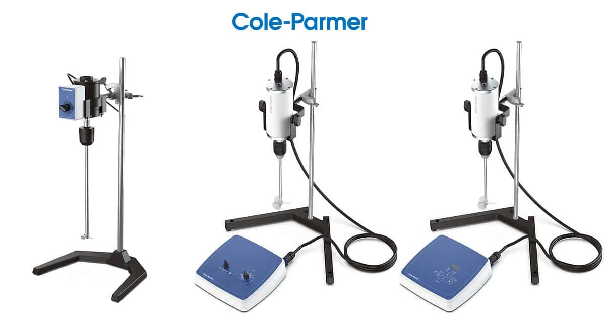Cole-Parmers laboratoriemiksere leveres i tre forskjellige utgaver: GP-serien, SP-serien og SD-serien. Felles for alle utgavene er at de har nøkkelfri chuck med 10 mm diameter, at de er godt beskyttet mot vannsøl (IP44) og at de har innebyggede sikkerhetsfunksjoner som beskytter mot motorfeil. Sikkerhetsfunksjonene sørger for at laboratoriemikseren automatisk skrus av ved overbelastning eller overoppheting av motoren, og det tennes en varsellampe.