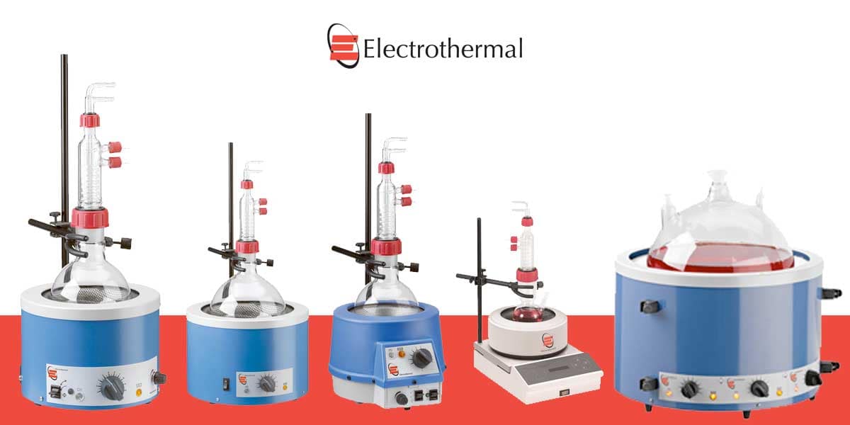 Electrothermal har et stort utvalg av varmemantler, tilpasset mange ulike kolbestørrelser. Den minste varmemantelen passer til oppvarming av glasskolber i størrelsen 10 til 50 ml. Den største varmemantelen er i industristørrelse, og kan varme opp glasskolber på opptil 22 liter.